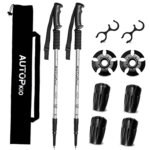 AUTOPkio Bastones Trekking Palos Senderismo, UltraligeroTelescópicos Aluminio Bastones Senderismo 65cm-135cm Antichoque con EVA Mango de Espuma para Mujer Niño Alpinismo Trail Caminar Viaje