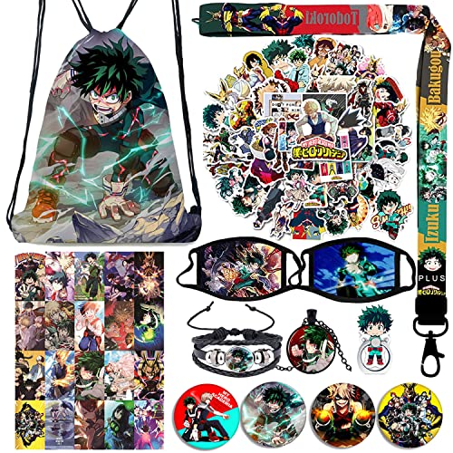 My Hero Academia Set -1 bolsa con cordón / 50 hojas de pegatinas / 4 insignias de botones / 1 soporte para anillo de teléfono móvil / 1 llavero / 20 tarjetas Lomo / 1 pulsera / 1 collar / 1 cordón