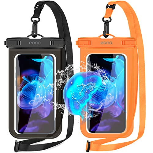 Amazon Brand - Eono Funda Impermeable Móvil, 2 Unidades IPX8 Universal Bolsas Impermeables para Móvil con Correa para iPhone 13 Pro MAX 12 11 X XR 8 Samsung S22 S21 S10 S9 Xiaomi y Otros hasta 7"