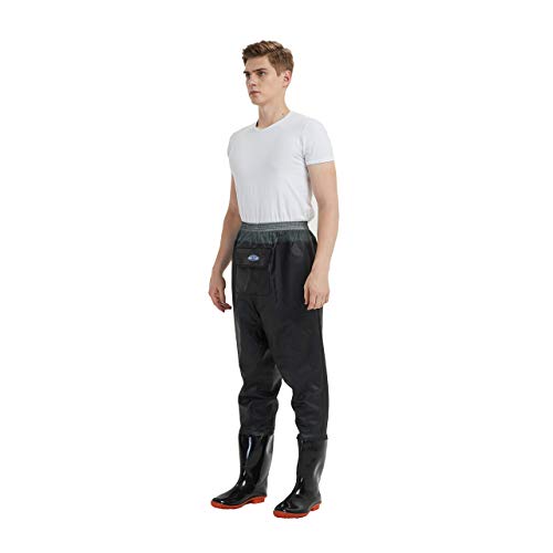 - Manténgase seco mientras pesca con nuestros pantalones vadeadores hasta el pecho. Gracias al tejido revestido especial y a las botas incorporadas, este vadeador es 100% impermeable.