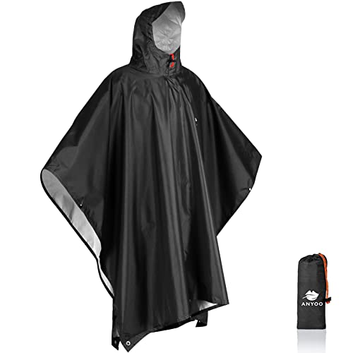 Anyoo Poncho de Lluvia Reusable de Ripstop transpirante Ligero a Prueba de Agua Multiuso Impermeable con Capucha de Lona de Tienda de Campaña Ideal para el Aire Libre Campamento Excursionismo y Pesca