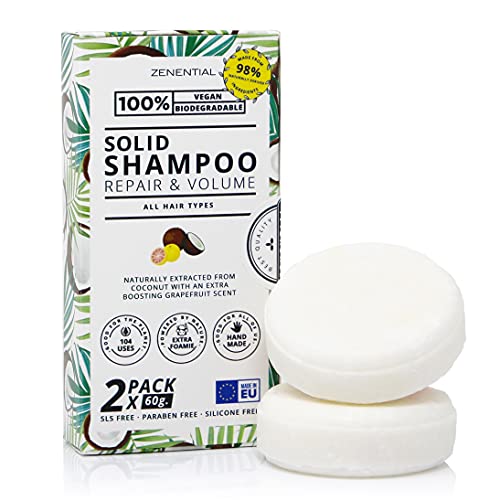 - 100% VEGANO Y BIODEGRADABLE: Este pack contiene 2 barras de champú sólido a base de coco con aroma a pomelo. 100% vegano y biodegradable, arrastrará el exceso de grasa de tu cuero cabelludo y aumentará el volumen de tu cabello.