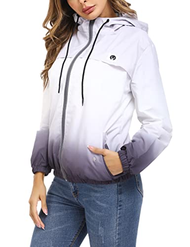 • Chaquetas para exteriores resistentes al viento: la chaqueta para mujer está diseñada con capucha con cordón para protegerte del viento y la lluvia ligera. Dos bolsillos delanteros con diseño de cremallera pueden almacenar tu teléfono y llaves.
