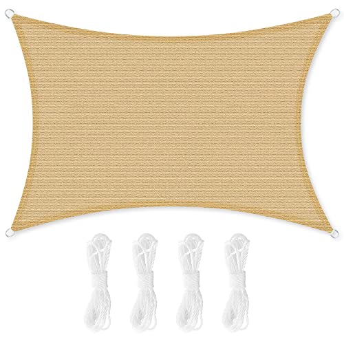 Solennoire, Vela De Sombra | Toldo Suspendido Ligeramente Impermeable ~4x6m | Lona 100% Poliéster | Sombreado 98% - Protección UV 99% | Cuerdas de Fijación & Anillos de Acero Inoxidable | Beige
