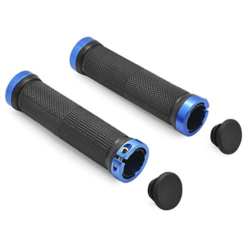 - ▶El bloqueo de aleación de aluminio doble evita que los puños del manillar se suelten. Una vez que esté instalado correctamente, nuestros agarres de bloqueo permanecerán en su lugar y no girarán ni girarán.