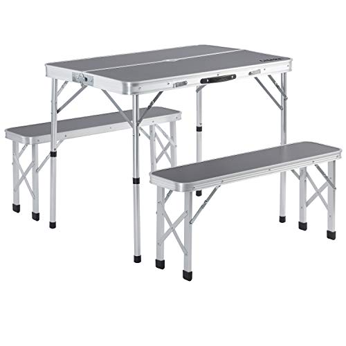 - PERFECTO PARA IR DE CAMPING: Esta gran mesa de camping de tectake, junto a su juego de bancos, será tu fiel aliada cuando te vayas de excursión al campo con tu familia o amigos.