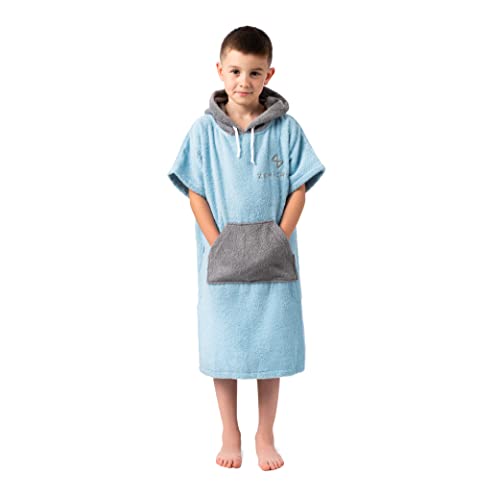 Poncho Surf Para Niño - Toalla 100% Algodon - Azul Claro - Poncho Niño y Niña con Capucha - Ideal como Toalla Surf, Toalla Piscina, Toallas de Playa Toalla Deporte - Poncho Toalla Niño 6-13 años