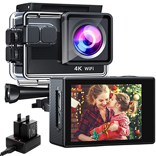 Cámara Deportiva 4k 20MP con WiFi Cámara Deportiva Resistente al Agua a 40 Metros, cámara Deportiva a Prueba de Vibraciones Cámara de Casco grabadora de Ciclismo con 2 baterías y Cargador Externo