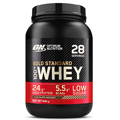 Optimum Nutrition Gold Standard 100% Whey Proteína en Polvo, Glutamina y Aminoácidos Naturales, BCAA, Chocolate y Avellana, 28 Porciones, 896 g, Embalaje Puede Variar