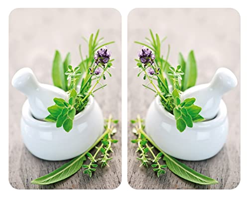 Wenko Herdabdeckplatte Universal Kräutergarten, 2er Set, für alle Herdarten, Gehärtetes Glas, 30 x 52 cm, mehrfarbig