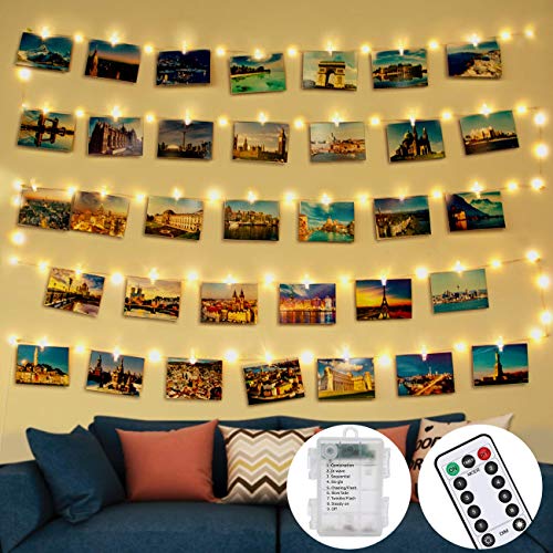 litogo Colgar Fotos de Luces, 5m 50 Led Clip Cadena de Luces LED 30 Pinzas Para Fotos Fotoclips Guirnalda de Luces Pinzas con Luz para Colgar Fotos Por decoración, Habitaciones, Bodas,Cumpleaños